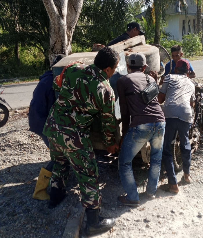 Abdya – Dalam rangka meningkatkan hubungan silaturahmi dan kepedulian terhadap desa binaan, Babinsa Koramil 02/Kuala Batee Koptu Ali Sukiman melaksanakan kegiatan humanis dengan membantu warga mengangkat molen (mesin pengaduk semen) yang akan dibawa ke lokasi pembangunan KDMP di Desa Lhung Geulumpang, Kecamatan Kuala Batee, Kabupaten Abdya, Rabu (28/1/2026).