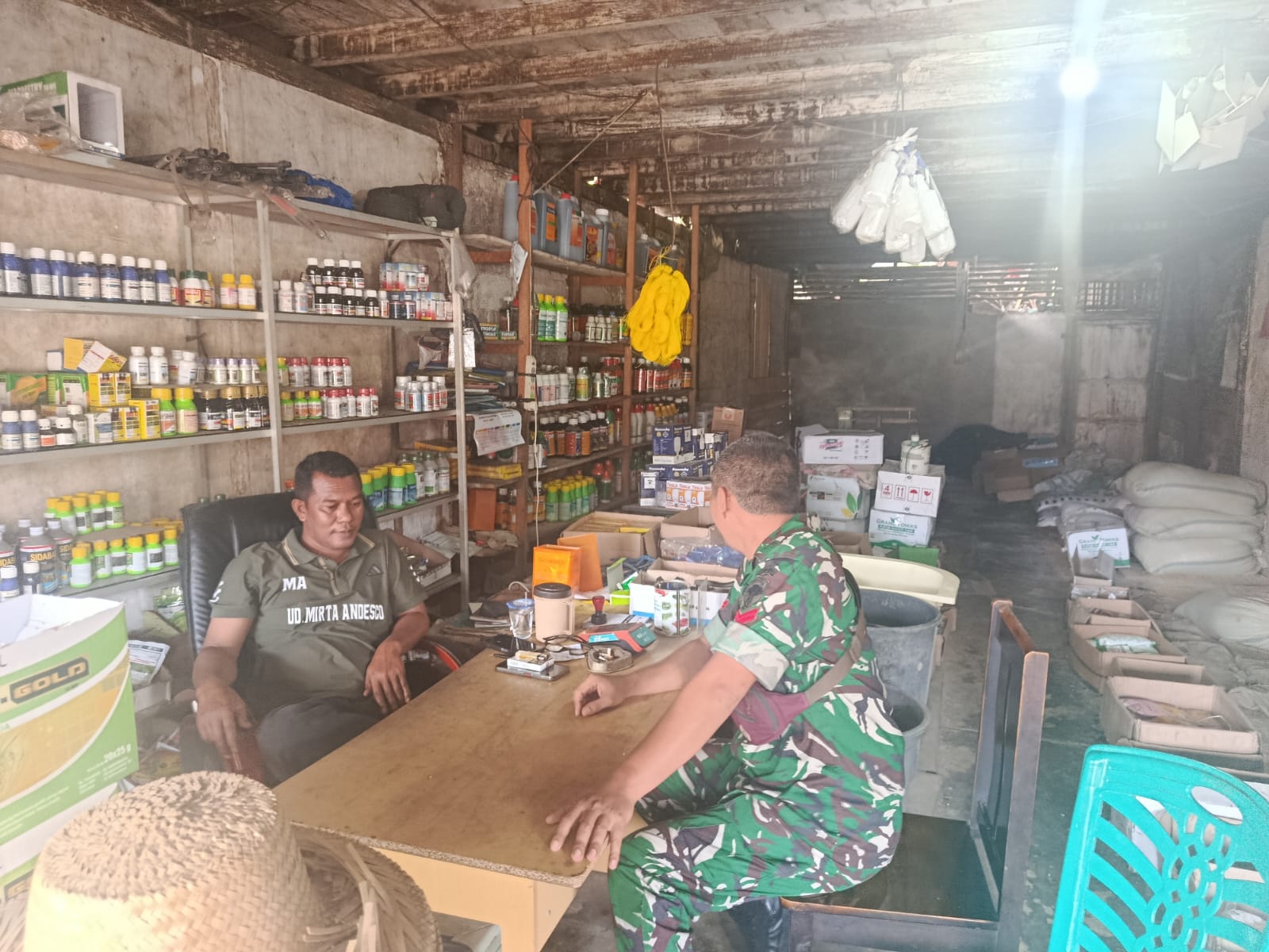 Abdya – Koptu Mujiyono, Babinsa Koramil 03/Jeumpa melaksanakan kegiatan Komunikasi Sosial (Komsos) dengan penjual obat dan pupuk pertanian di Desa Jeumpa Barat, Kecamatan Jeumpa, Kabupaten Abdya, Sabtu (7/2/2026)