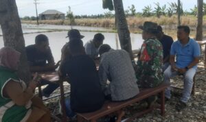 Abdya –Babinsa Koramil 03/Jeumpa Kodim 0110/Abdya Sersan Kepala Aidi melaksanakan komsos dengan pedagang Ikan keliling Bapak Abu Hanifah di Desa binaannya Desa Kuta Makmur Kecamatan Jeumpa Kabupaten Abdya, Sabtu (31/5/2025).