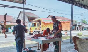 Dalam kesempatan tersebut Babinsa Serka Aidi menanyakan harga ikan kepada penjual Ikan Pak Abu Hanifah, “Alhamdulillah Pak hari ini ikan agak murah karena cuaca sudah mulai membaik”, sambil melayani pembeli dengan senyuman yang khas.