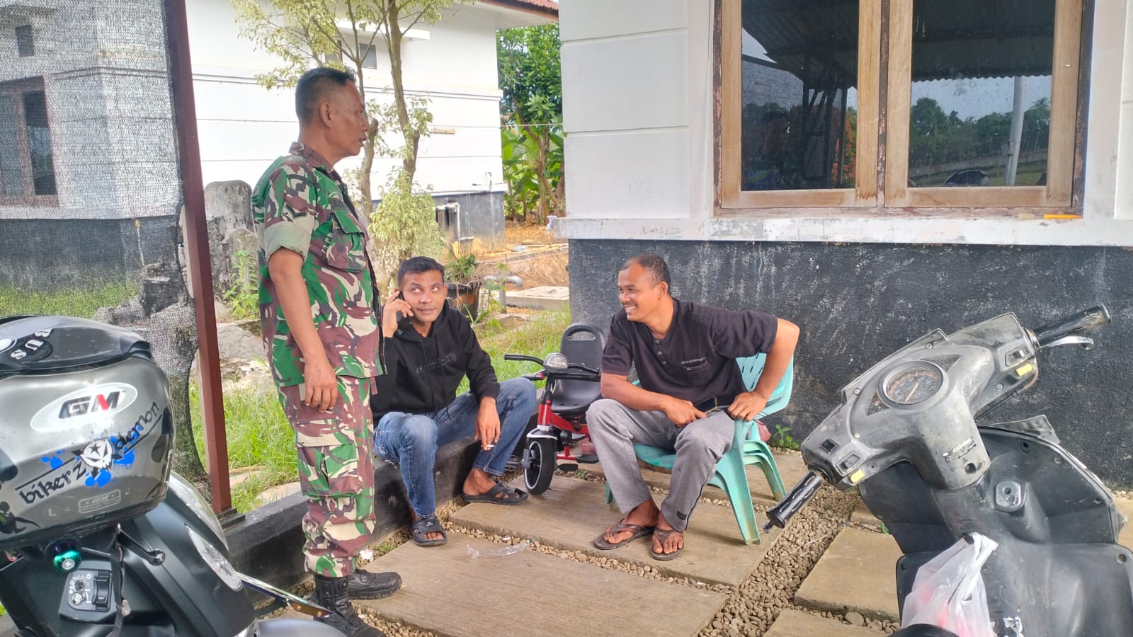 Abdya – Babinsa koramil 01/Blangpidie Serda Dapit Cristian melaksanakan silaturahmi dengan petugas security di Desa Alue Manggota Kecamatan Blangpidie Kabupaten Abdya, Sabtu (17/1/2026)