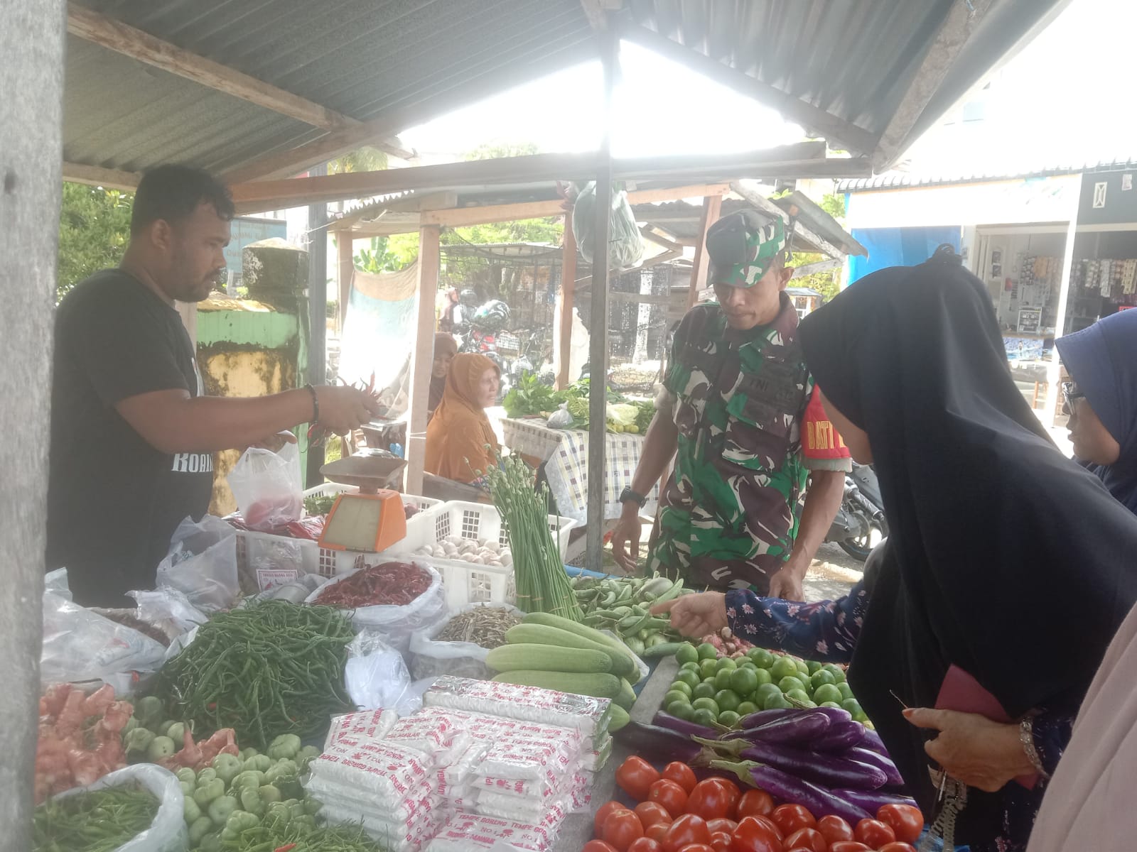 Babinsa Serma Ardiansyah menyampaikan kita lakukan pengecekan sayur mayur di pasar kepada pedagang secara langsung, diwaspadai pedagang menaikkan harga tanpa ada mengikuti kebijakan dari pemerintah sesuai harga normal.