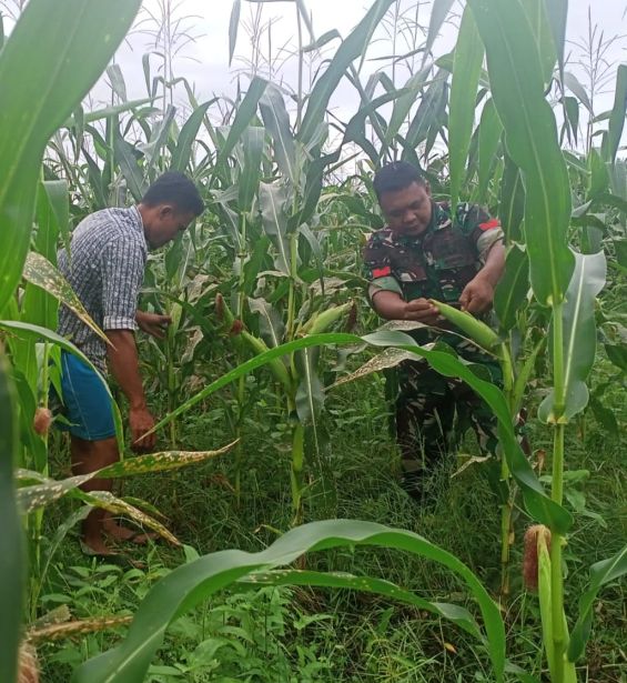 Abdya – Mengatasi keluhan warga Babinsa Kuta Makmur, Kecamatan Jeumpa, Kabupaten Aceh Barat Daya Serka Aidi Bersama Kujreun pak Mustamin memantau sawah warga yang baru ditanam sekitar satu minggu, Selasa (17/6/2025).