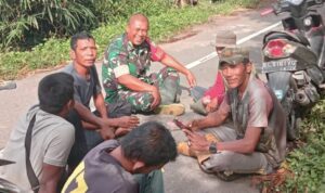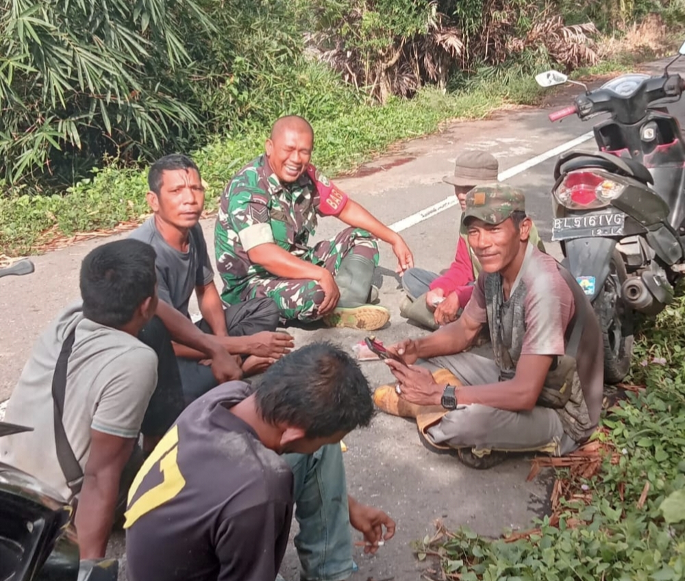 Abdya – Babinsa Koramil 03/Jeumpa Serka Aidi melaksanakan kegiatan Komunikasi Sosial (Komsos) bersama masyarakat di sela-sela istirahat gotong royong pembersihan…