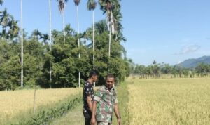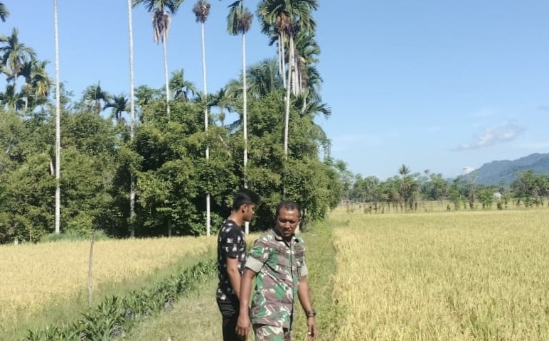 Abdya – Babinsa Koramil 01/Blangpidie Kodim 0110/ Abdya Serda Iwan Setiawan cek padi siap panen milik warga desa binaan, di…