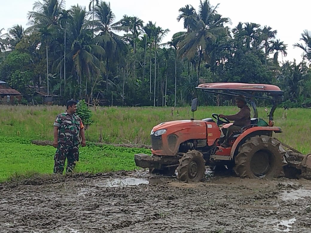 Abdya – Dalam rangka mendukung percepatan target tanam padi dan program ketahanan pangan nasional, Babinsa Koramil 07/Babahrot Kodim 0110/Abdya Koptu Iskandar turun langsung ke sawah mendampingi para petani binaan pembajakan sawah di Desa Simpang Gading, Kecamatan Babahrot, Selasa (24/3/2026).