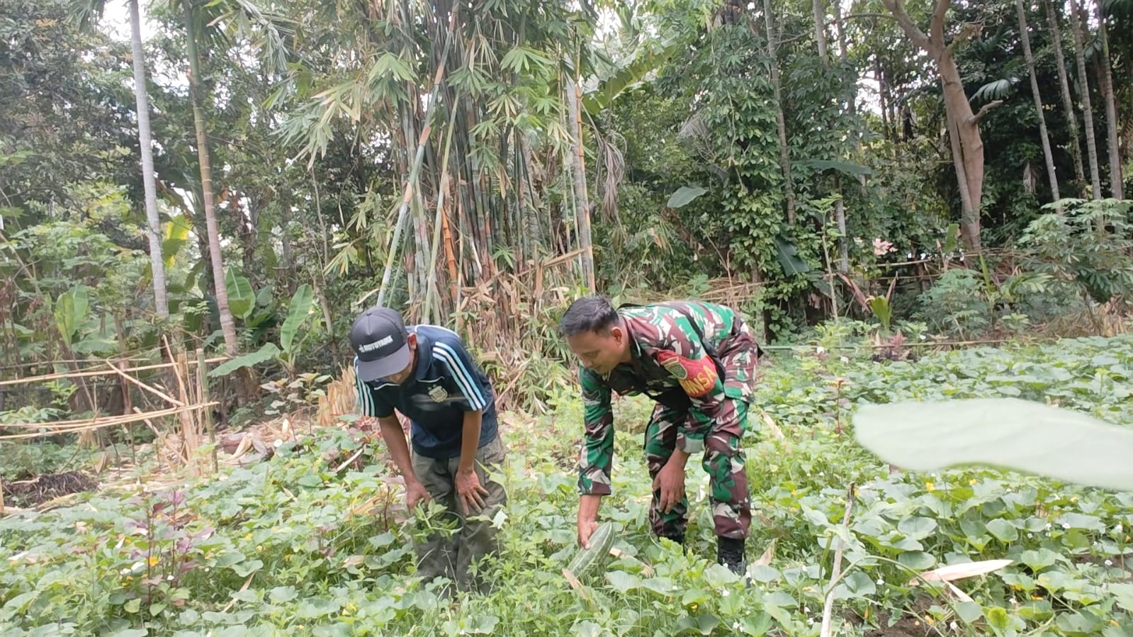 Pastikan Perkembangan Tanaman Baik, Babinsa Dan Petani Lakukan Perawatan Tanaman Timun Suri