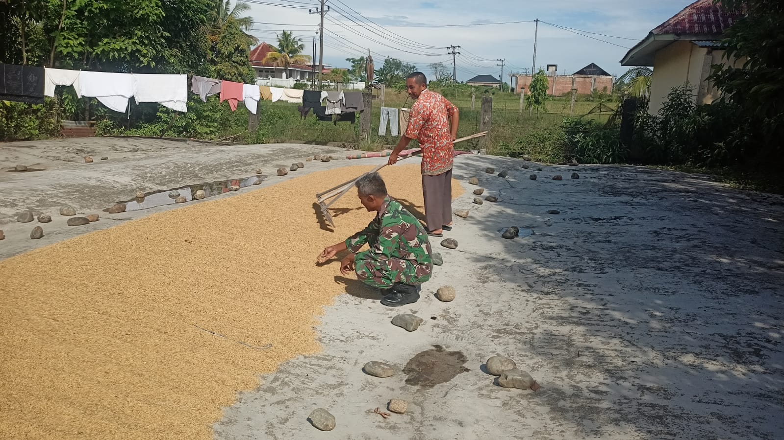 Kegiatan tersebut dilakukan sebagai bagian dari pendampingan Babinsa terhadap para petani guna memastikan hasil panen dapat dikelola dengan baik, termasuk proses pascapanen seperti penjemuran yang sangat menentukan kualitas gabah.