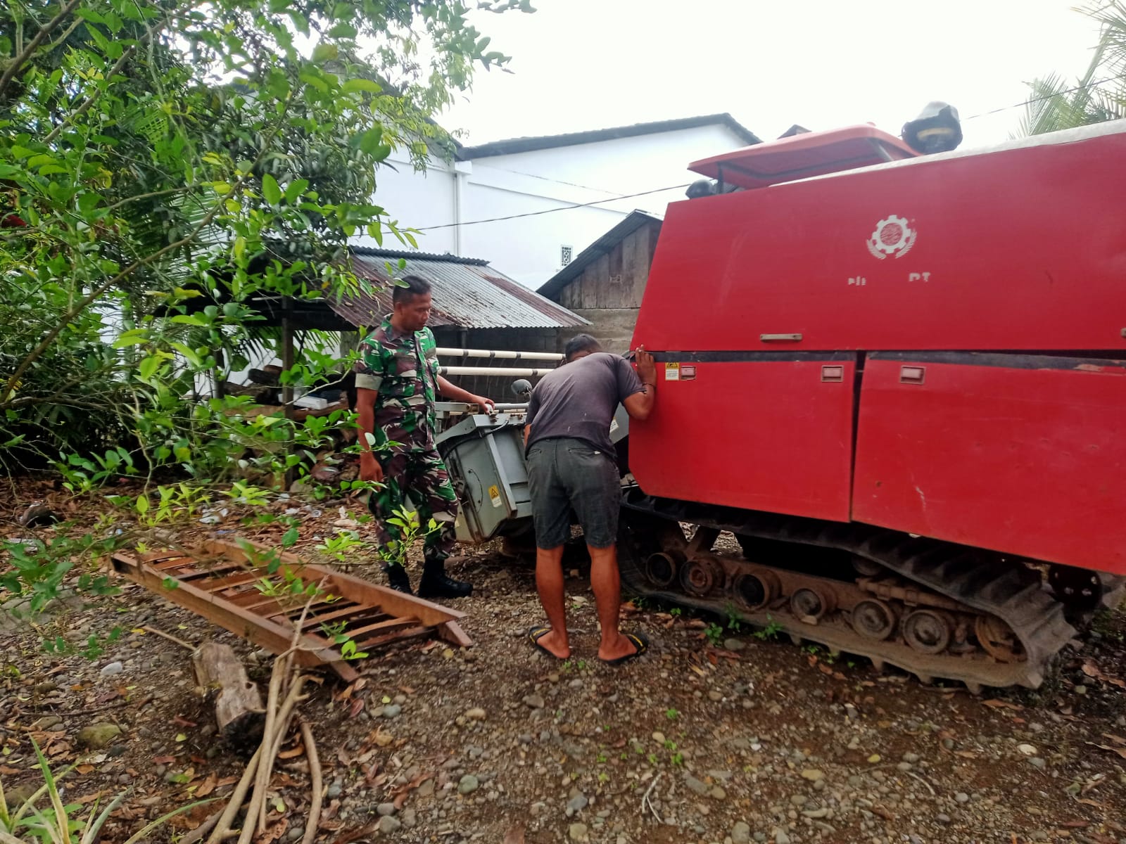 Dalam kegiatan tersebut, Serda Nursahid tidak hanya memantau, namun juga turut memberikan bantuan fisik dengan ikut membantu warga memperbaiki mesin potong padi combine yang mengalami kerusakan. Kehadiran Babinsa di tengah masyarakat menjadi bentuk nyata kepedulian TNI terhadap kesulitan yang dihadapi warga, khususnya para petani di desa binaan.