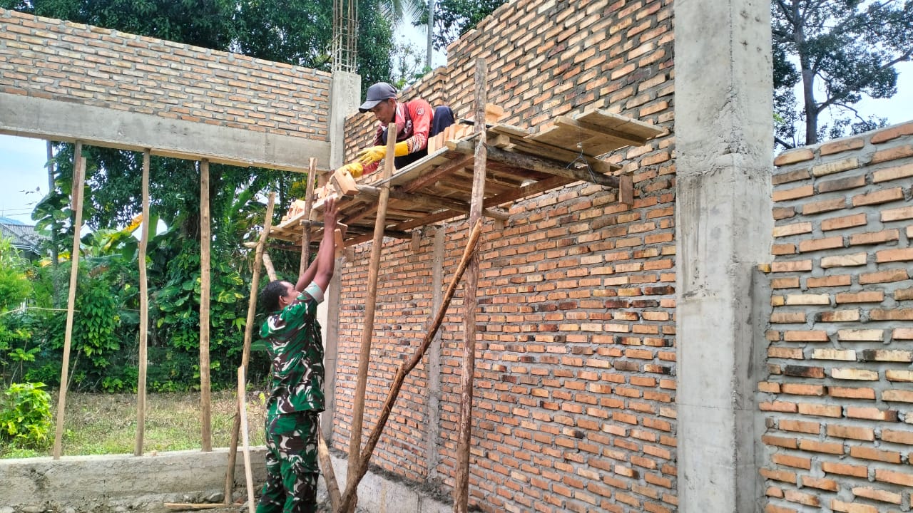 Ringankan Pekerjaan Warga, Babinsa Blangpidie Bantu Pemasangan Bata Rumah Warga Binaan