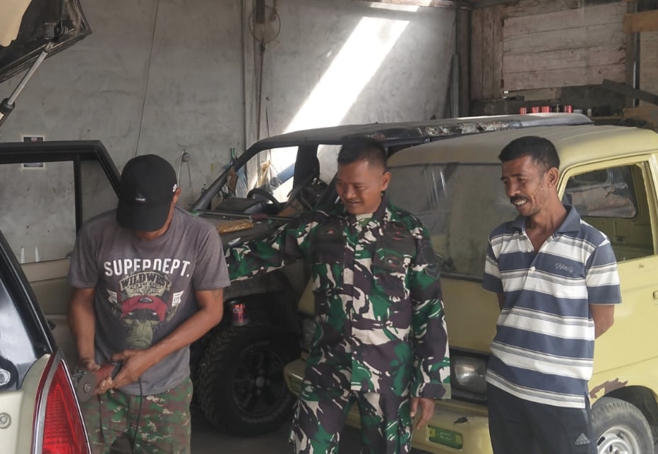 Abdya – Babinsa Koramil 09/Lembah Sabil Kodim 0110/Abdya Sertu Turohmat di sela waktu melaksanakan kegiatan Produktif dgn usaha Bengkel Mobil dgn warga binaan Pak Joko, Desa Cut Ba’u, Kecamatan Lembah Sabil, Kabupaten Abya, Kamis (9/4/2026)