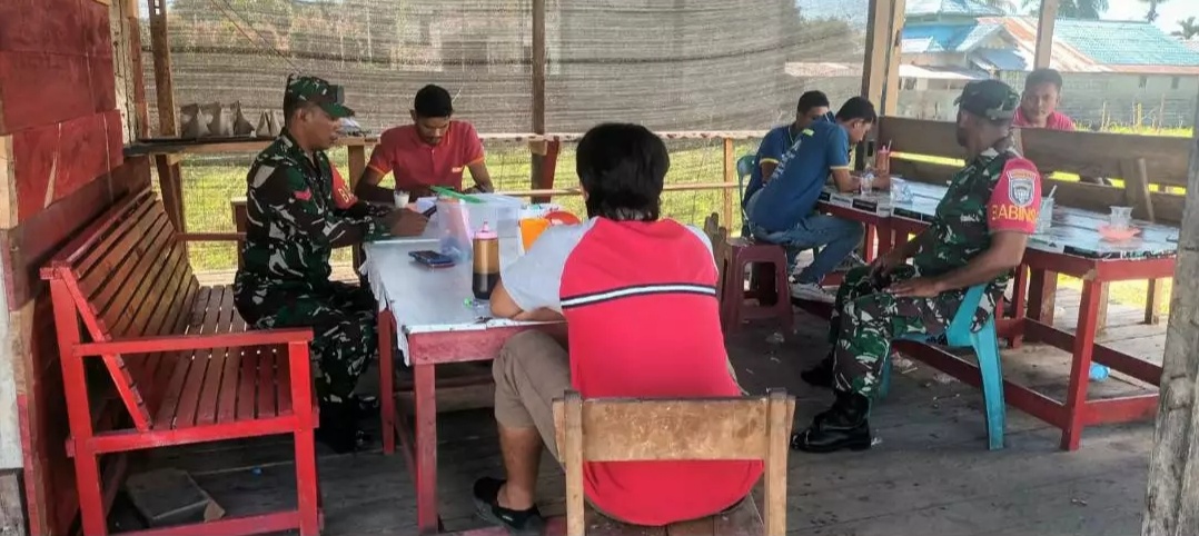 Abdya- Babinsa Posramil 08/Setia Kodim 0110/Abdya Koptu Darwanto melaksanakan komsos dengan kepala sekolah SD negeri 6 Setia, Selasa (4/2/2025) .