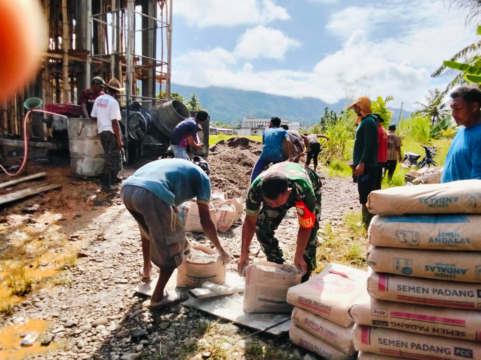 Dalam kegiatan tersebut, Serda Samijo tampak berbaur bersama warga, bahu-membahu mengangkat material semen guna mempercepat proses pembangunan rumah. Kehadirannya tidak hanya memberikan bantuan tenaga, tetapi juga menjadi penyemangat bagi masyarakat yang sedang bekerja.