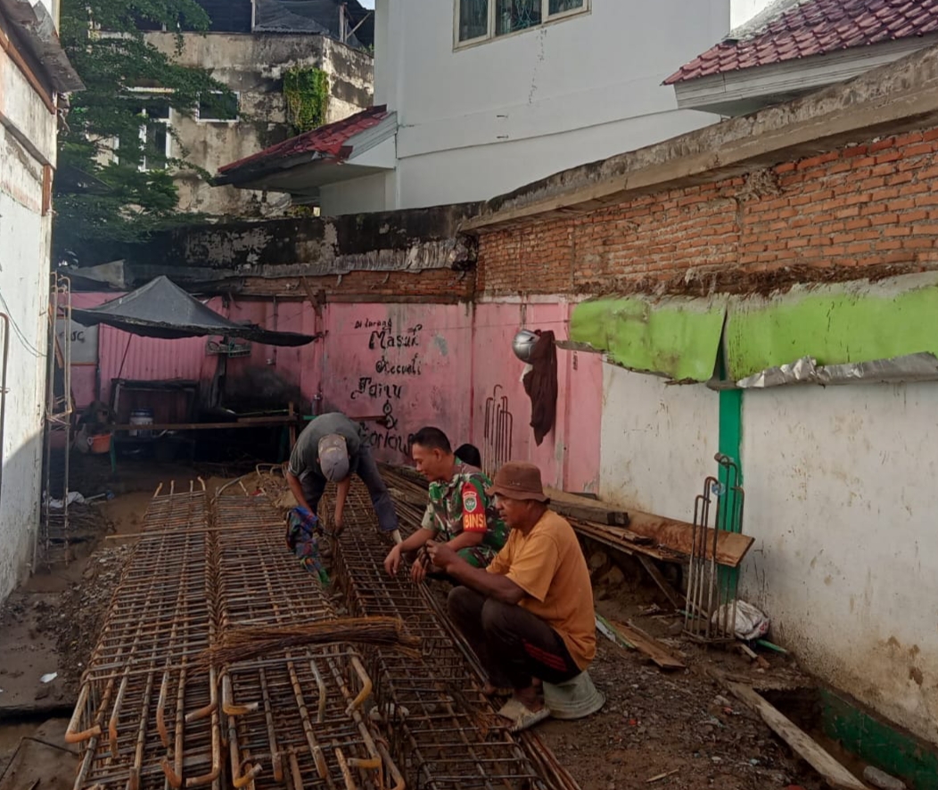 Abdya – Babinsa Koramil 01/Blangpidie Serda Dapit Cristian menghampiri pekerja bangunan laksanakan komsos di Desa Keude Siblah, Kecamatan Blangpidie, Kabupaten Abdya, Sabtu (27/12/2025)