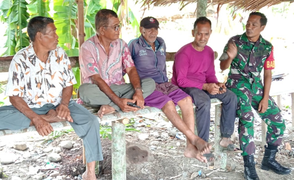 Ciptakan kedekatan warga binaan, Babinsa Koramil 09/Lembah Sabil Kodim 0110/ABDYA Serda Murni Surya melaksanakan Komsos dengan masyarakat Desa Ujung Tanah, Kecamatan Lembah Sabil, Kabupaten Abdya, Senin (1/12/2025)