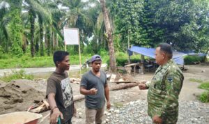 Abdya – Babinsa Koramil 05/Tangan-tangan Serda Tahwil hayat melaksanakan pendampingan menanam padi, di Desa Suak labu, Kecamatan Tangan-tangan, Kabupaten Aceh Barat Daya, Minggu (18/5/2025).