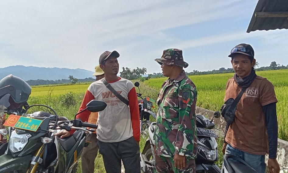 Tinjau Kesiapan Panen Raya Padi di Babahrot, Babinsa Maping Sistem dan Teknis Pendukung
