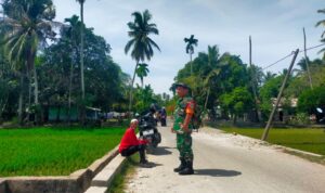 Abdya – Jajaran Pos Ramil 08/Setia Kodim 0110/Abdya bersama Bhabinkamtibmas melakukan Patroli Gabungan di wilayah binaan dan kembali mengingatkan masyarakat agar selalu gunakan masker di saat keluar rumah.