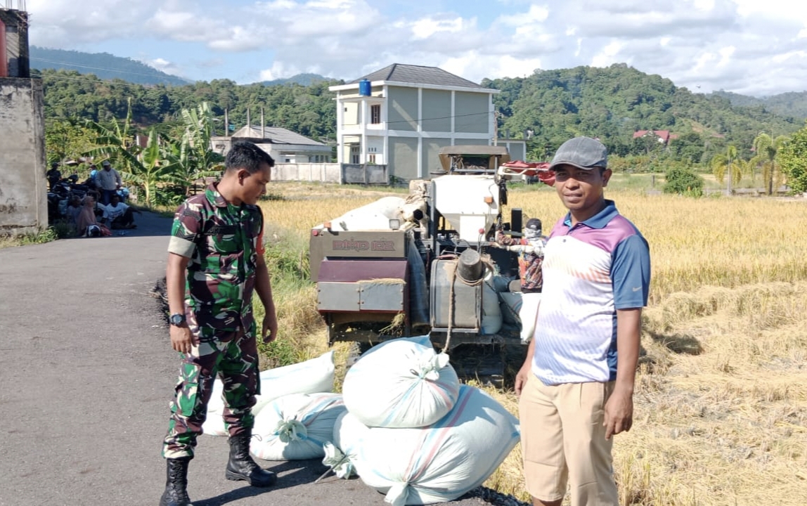 Pendampingan panen padi ini sebagai wujud kepedulian kami kepada petani, sekaligus untuk mengetahui langsung kondisi pertanian dan hasil panen di wilayah binaan, ujar serka Sukardi.