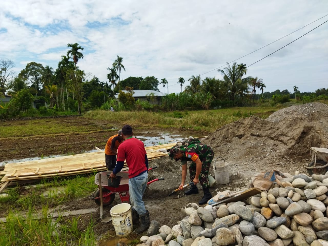 Kegiatan tersebut dilakukan sebagai bentuk kepedulian Babinsa terhadap kesulitan petani padi di wilayah desa binaan. Serda Nursahid bersama warga bergotong royong memberikan bantuan fisik pada pembangunan talud yang berfungsi untuk memperlancar aliran air menuju areal persawahan warga.